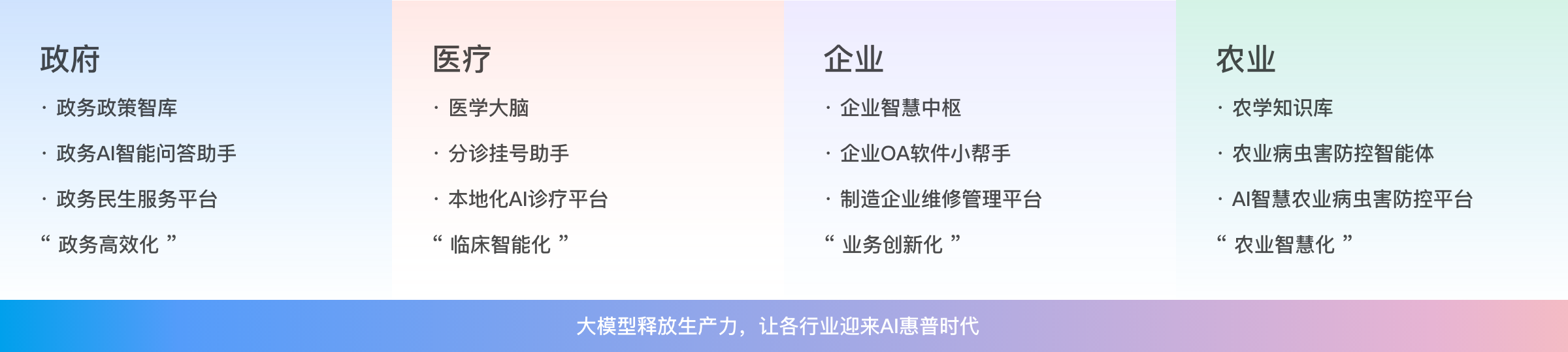 針對(duì)醫(yī)療、科研、企業(yè)、政務(wù)等領(lǐng)域差異化需求,提供 AI 一體機(jī)硬件支撐與定制化智能體應(yīng)用開(kāi)發(fā)服務(wù),配套選型、部署、運(yùn)維全鏈條服務(wù),高效適配 AI 訓(xùn)推場(chǎng)景,助力客戶(hù)快速落地 AI 應(yīng)用、加速智能升級(jí)。